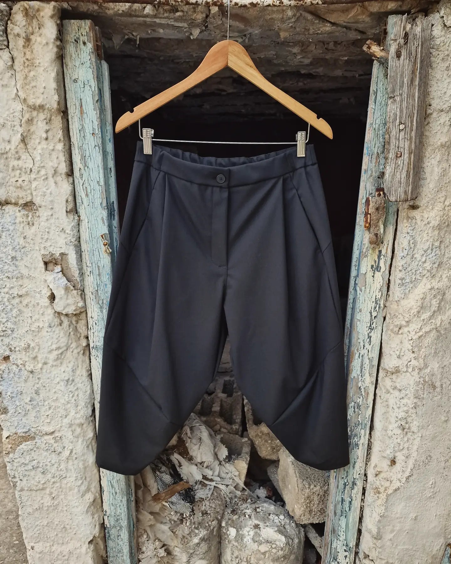 The Benett Japanese style pants offer comfort and uniqueness. They feature an elasticated waistband, pleats and two diagonal pockets in the front, offering functionality and elegance.