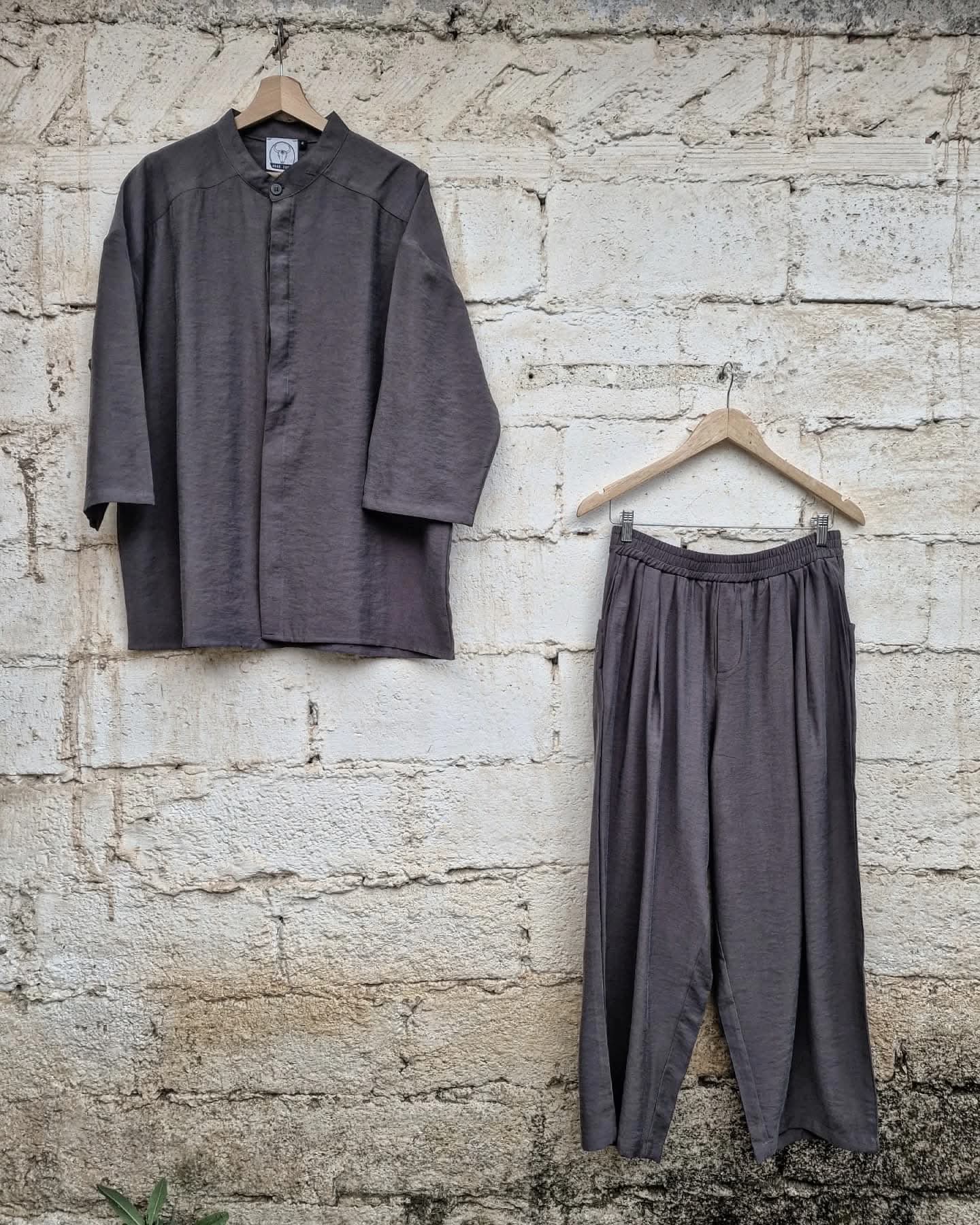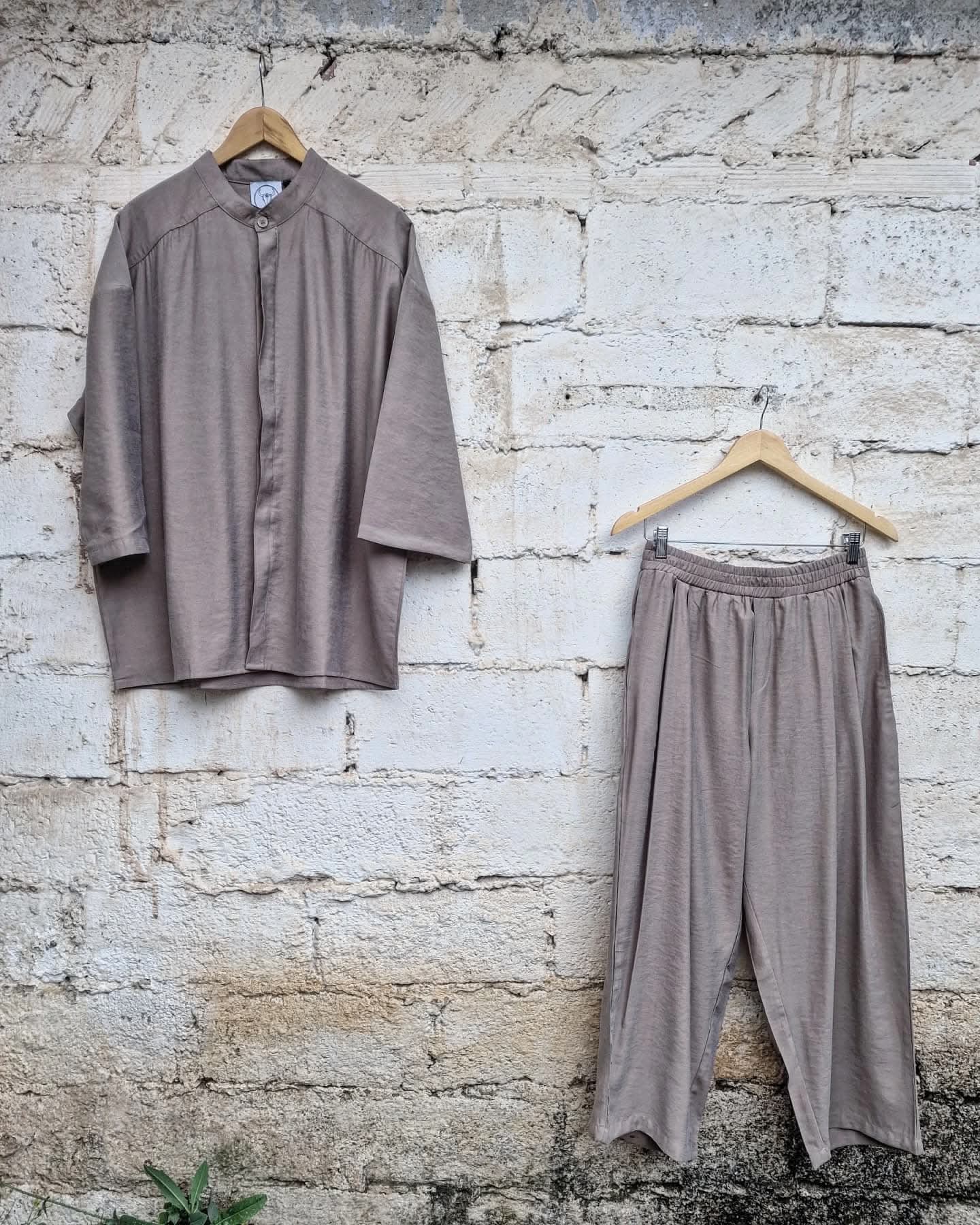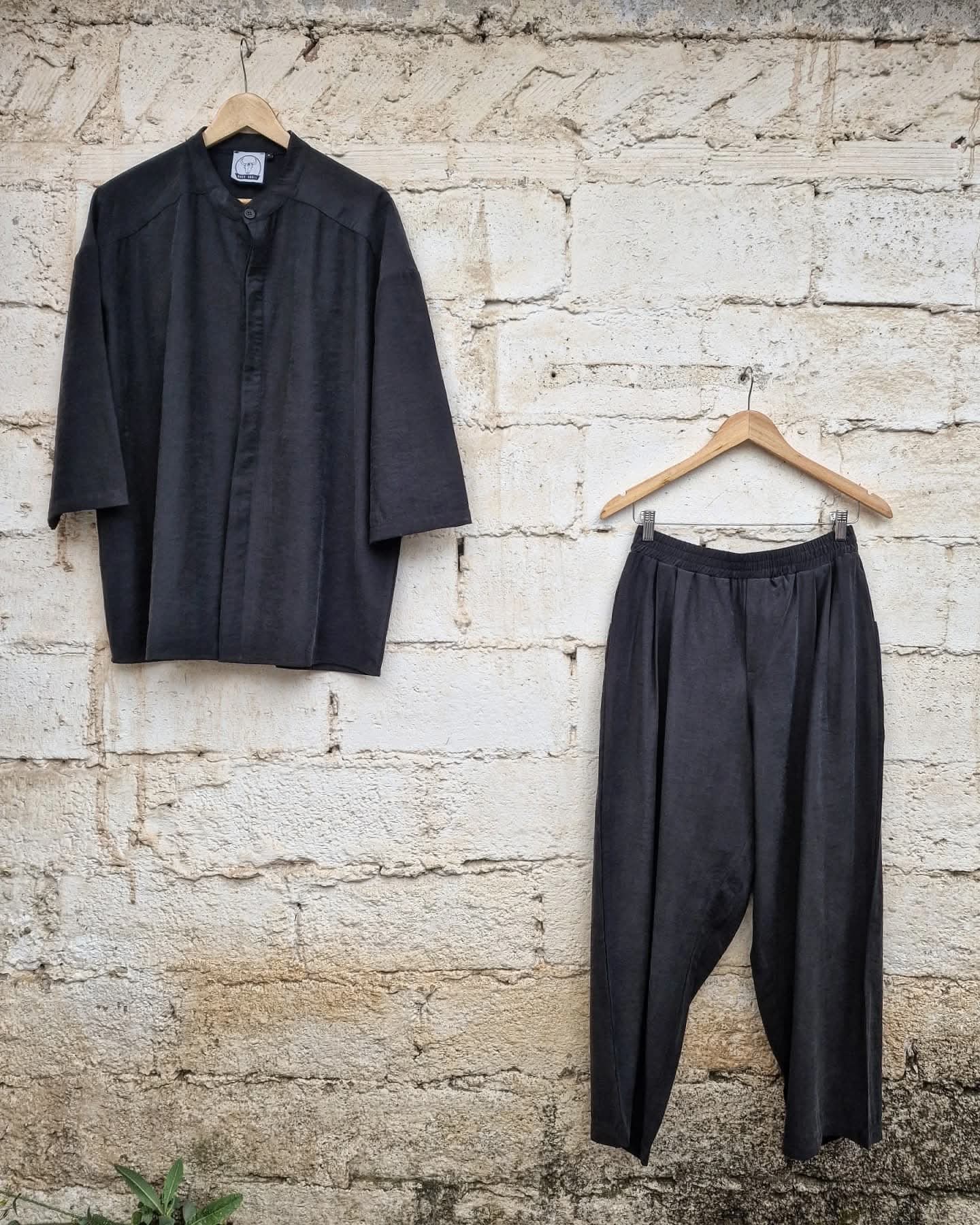 Dael σετ παντελόνι και πουκάμισο σε κανονική προς άνετη γραμμή διατίθεται σε δύο νούμερα .Το παντελόνι διαθέτει λάστιχο στην μέση καθώς και δύο τσέπες διαγώνια μπροστά και δύο στο πίσω μέρος .Το σετ της φωτογραφίας είναι ελληνικής ραφής και διατίθεται αποκλειστικά στην ιστοσελίδα μας.