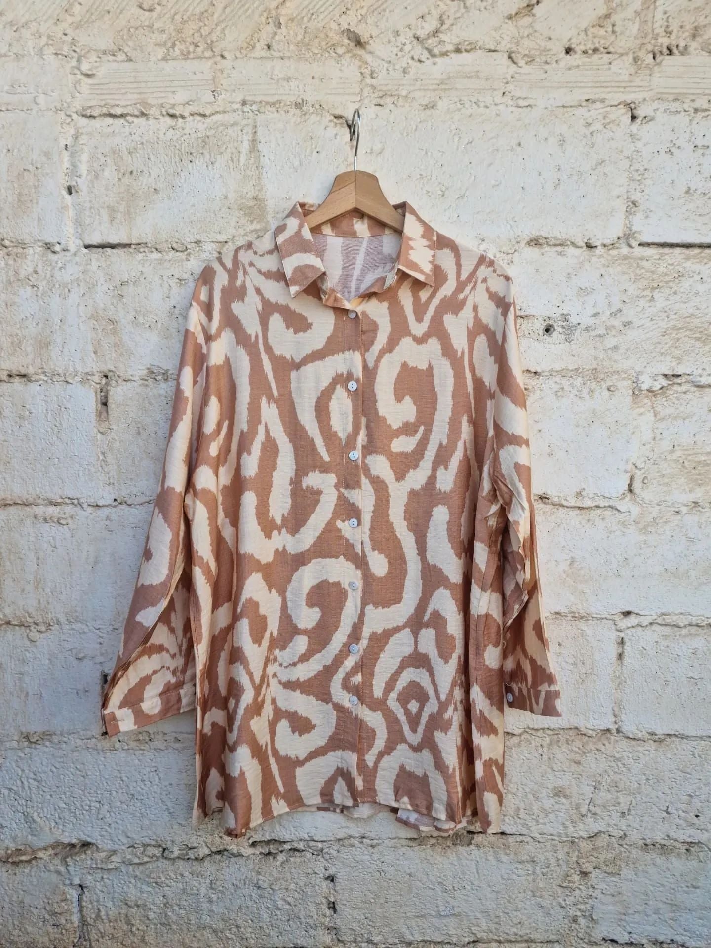 Hamlet πουκάμισο oversized σε άνετη γραμμή διαθέσιμο σε δύο νούμερα ένα print και τέσσερα χρώματα.