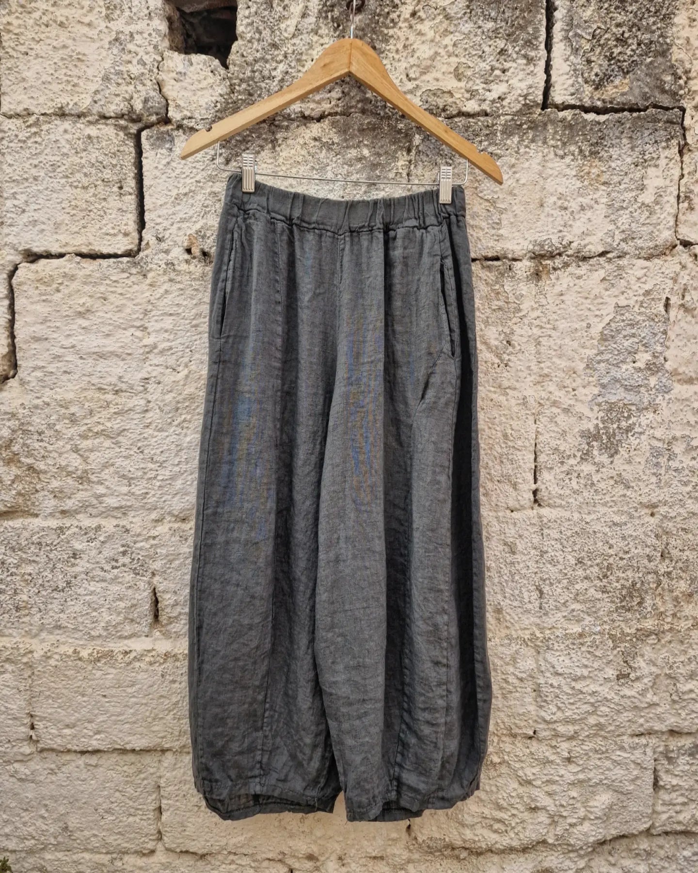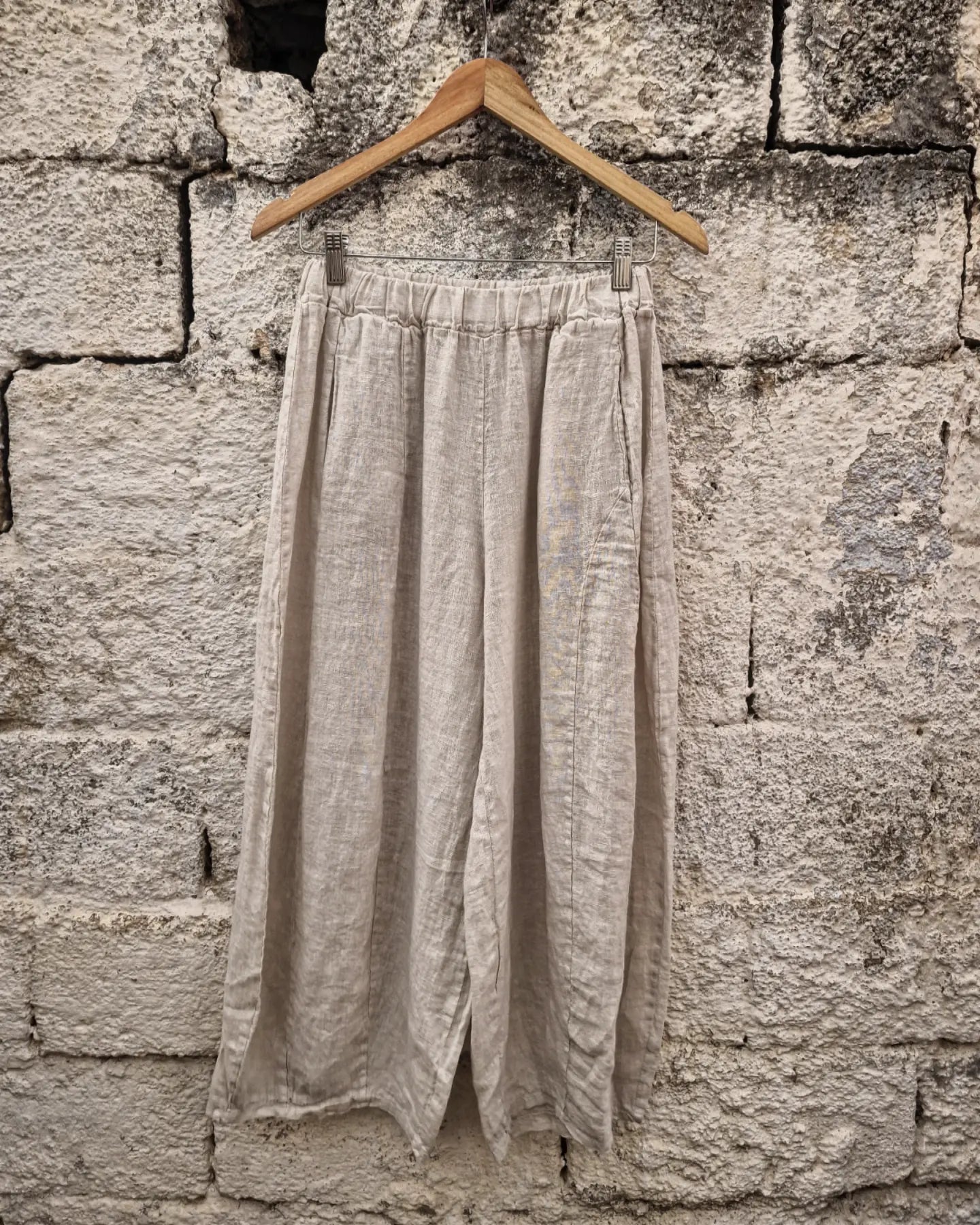 Παντελόνα Hydra Japanese oversized σε άνετη γραμμή, κατασκευασμένο από λινό ύφασμα. Διαθέτει λάστιχο στη μέση για άνετη εφαρμογή και δύο διαγώνιες μπροστινές τσέπες. Συνδυάζει την άνεση με τη φυσική διαπνοή του λινού υφάσματος, καθιστώντας το ιδανικό για καθημερινές αλλά και κομψές εμφανίσεις.