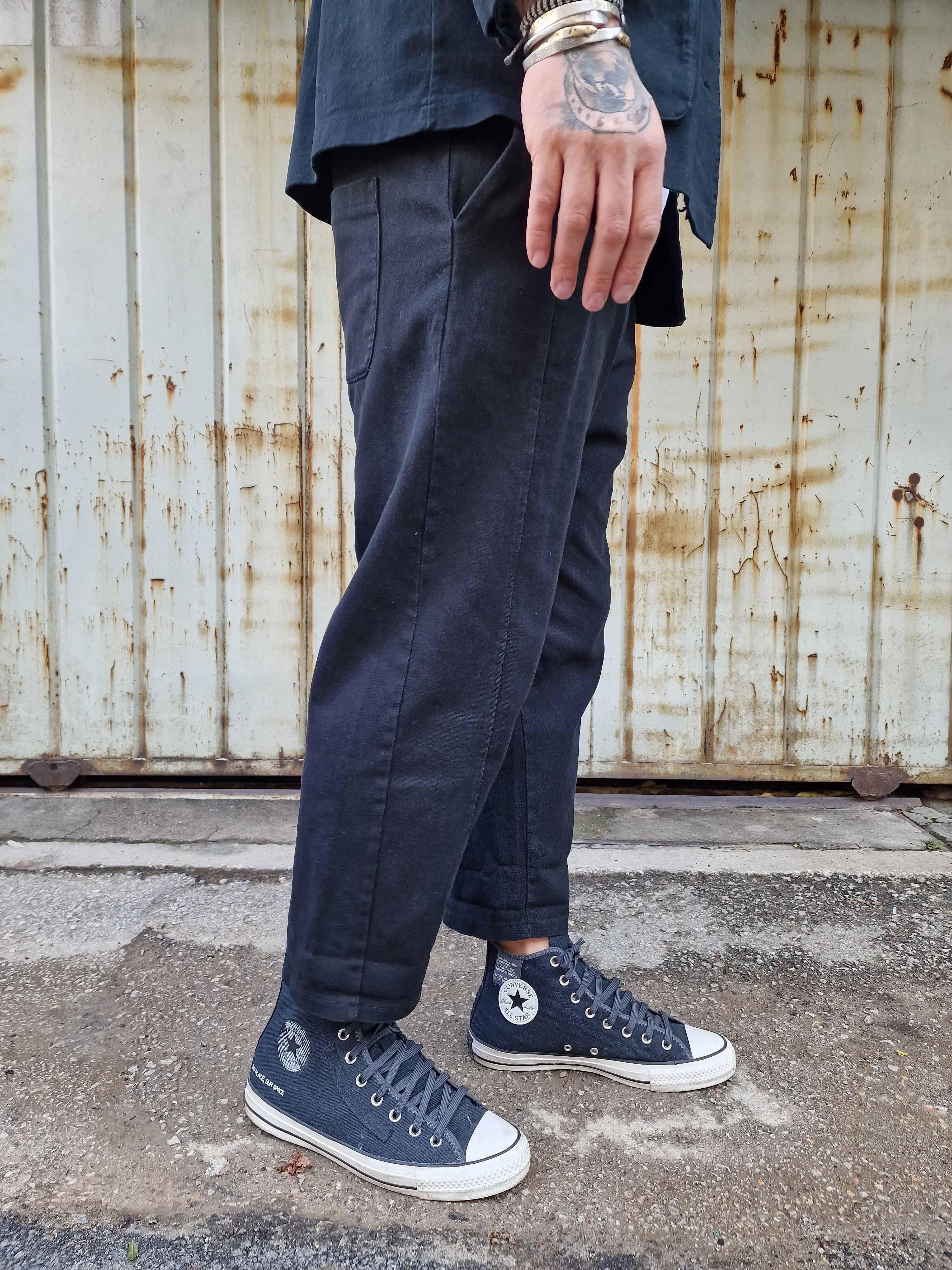 LIAM βαμβακερό παντελόνι onesize με κανονική προς άνετη γραμμή διαθέτει λάστιχο στην μέση 2 τσέπες διαγώνια μπροστά καθώς και δύο τσέπες στο πίσω μέρος.