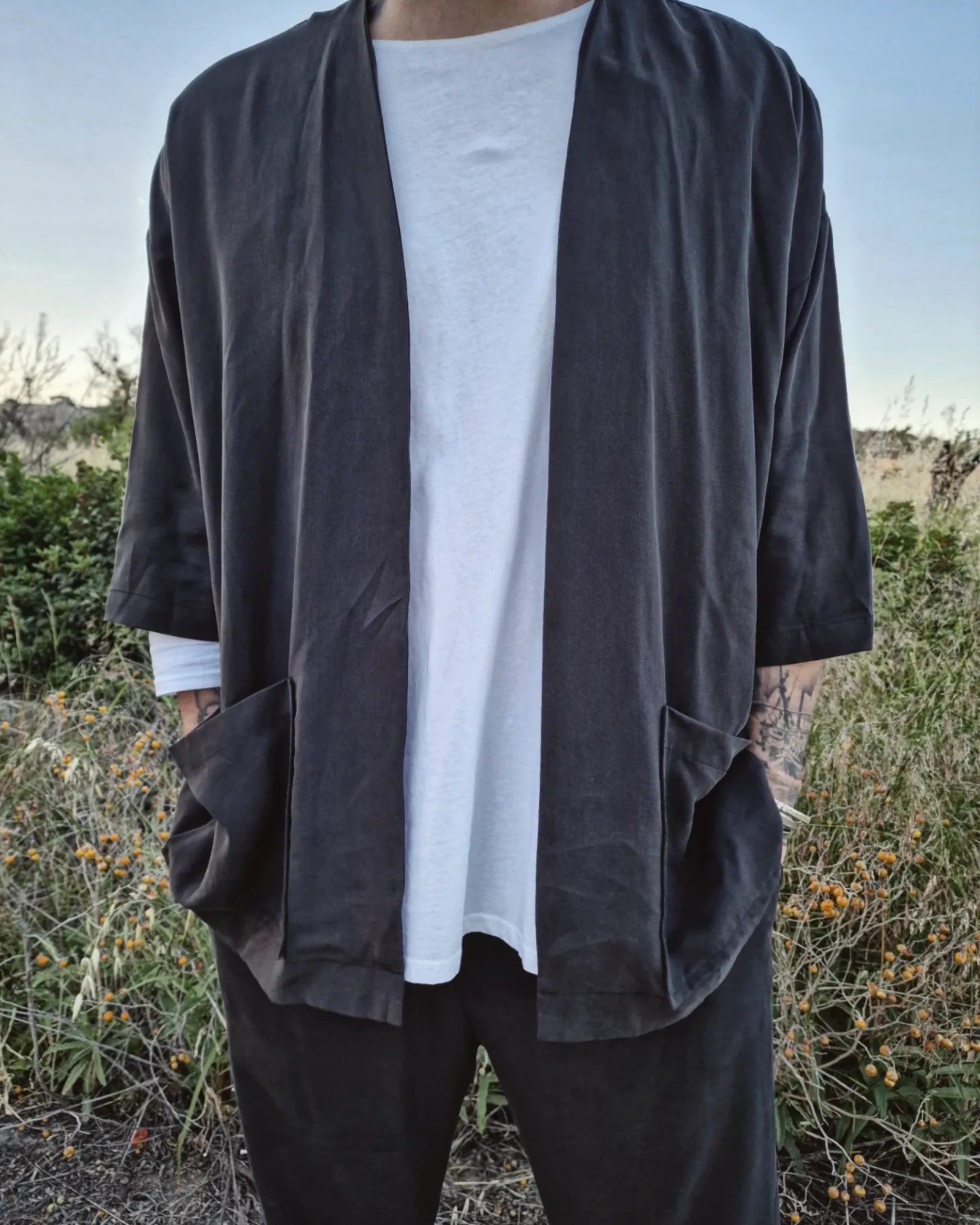 Το Colum σετ κιμονό και παντελόνι σε κανονική γραμμή, ελληνικής ραφής, είναι κατασκευασμένο από 100% tencel. Διατίθεται αποκλειστικά στην ιστοσελίδα μας σε μεγέθη S-M-L-XL-XXL.