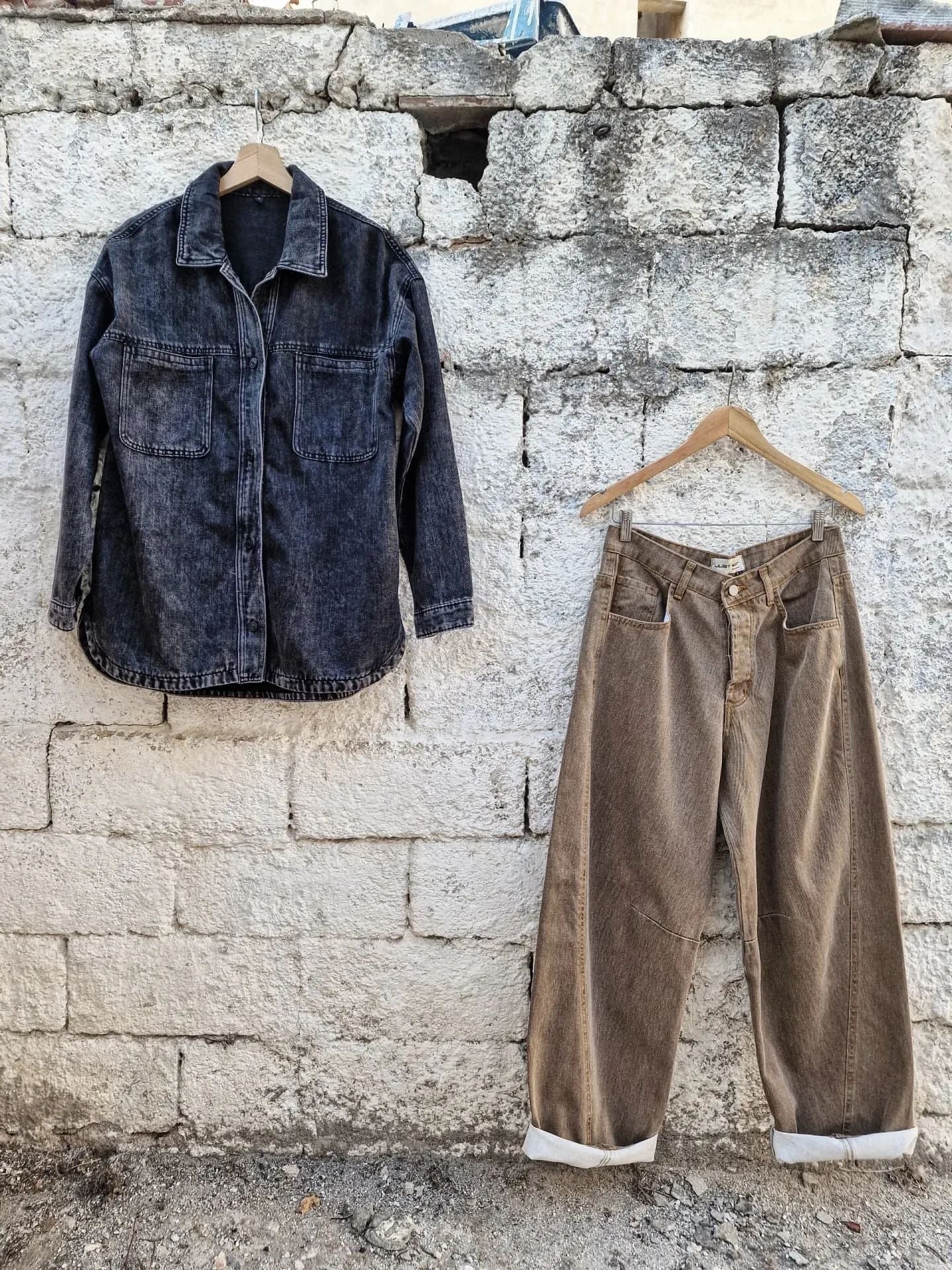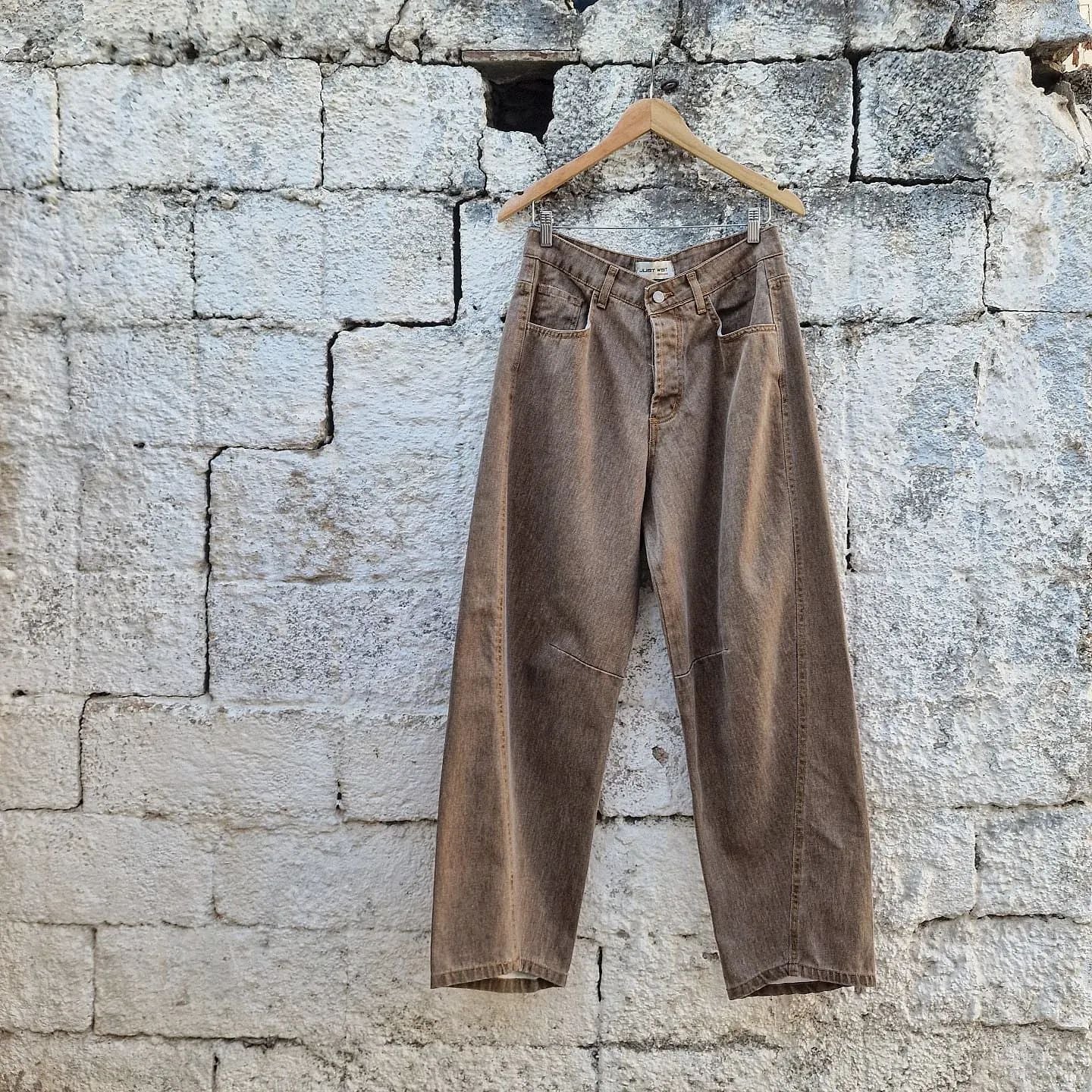 Το Tales  τζιν παντελόνι προσφέρει μια κανονική προς άνετη γραμμή με σταθερή μέση (ιταλική μέτρηση) , ενώ διαθέτει 2 τσέπες μπροστά και 2 πίσω. Το κλείσιμο γίνεται με κουμπιά, ενώ η απόχρωση είναι φθαρμένο ταμπά .